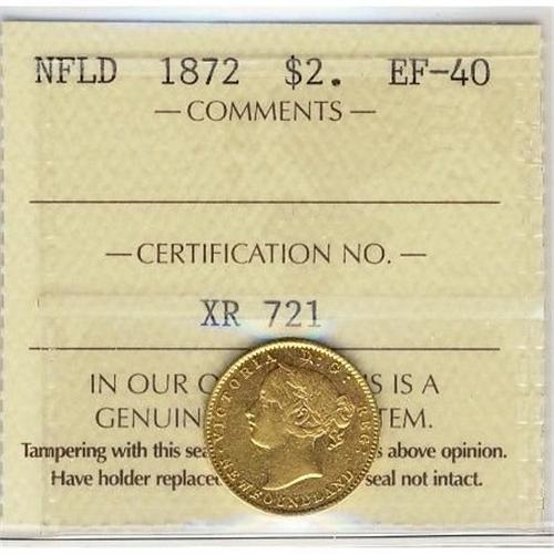 Nfld 1872 $2 Gold EF40.