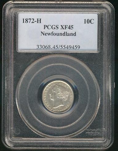 Nfld 1872H 10¢ PCGS XF45. Nice white example.