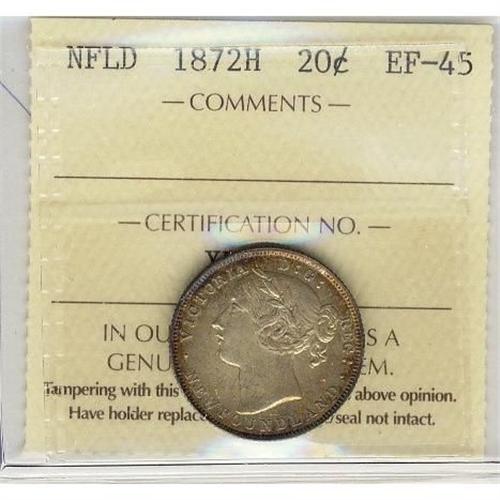 Nfld 1872H 20¢ ICCS EF45.