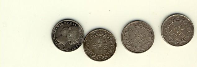 Nfld 1872H(3) & 1882H 10¢. Lot of 4 coins all F to VF.