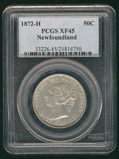 Nfld 1872H 50¢ PCGS EF45. Light grey with underlying lustre.