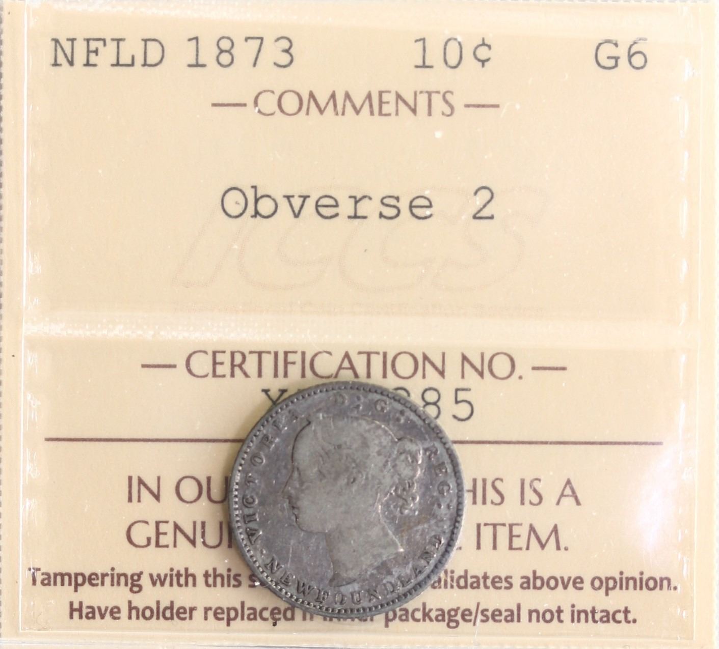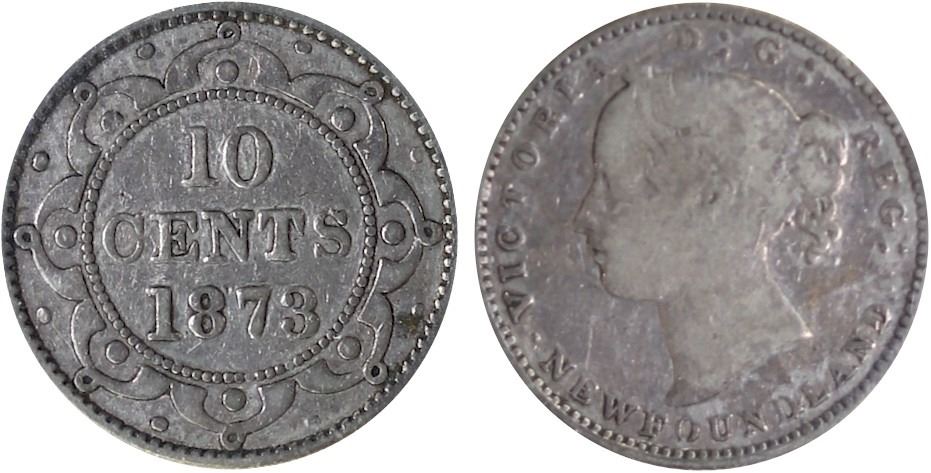 Nfld; 1873 10¢ "Obv.2" ICCS Good-6