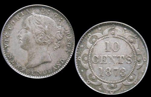 Nfld 1873 10¢ PCGS AU58PQ. Attractively toned with some underlying luster. Very scarce in this condition!