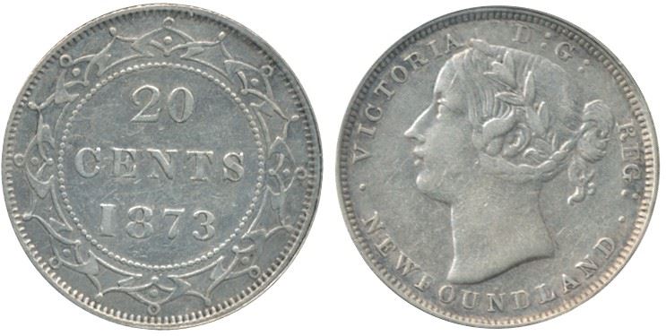 Nfld 1873 20¢ ICCS VF30. Key Date. Light peripheral tone. All detail is clear.