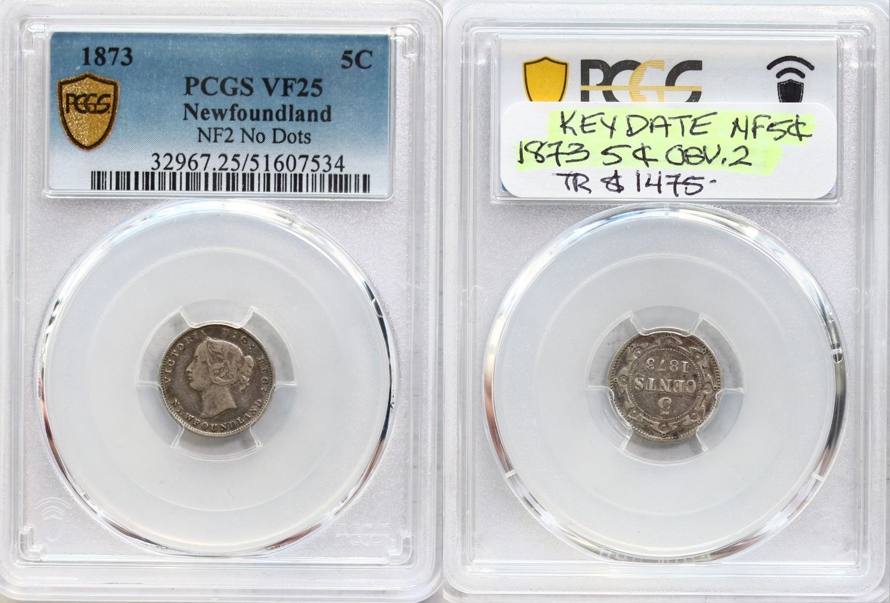Nfld 1873 5¢ "Obv.2" PCGS Choice Very Fine-25. Scarce obverse type.