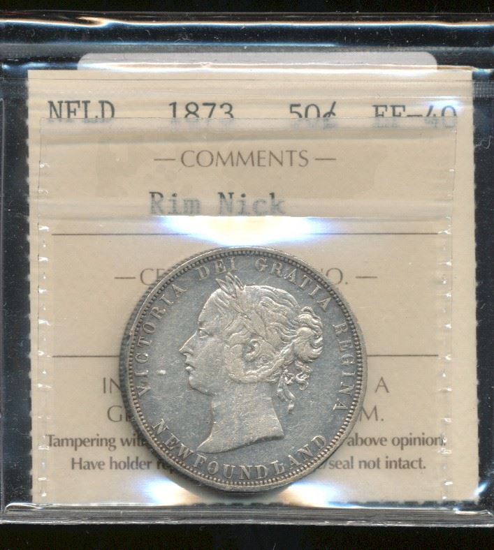 Nfld 1873 50¢ ICCS EF40 (Rim Nick). A few light scrs. on Rev.