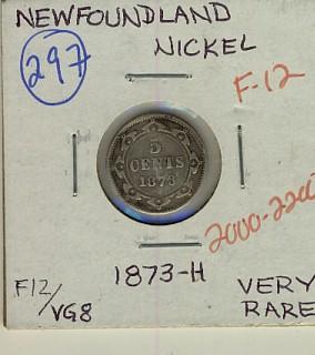 Nfld 1873H 5¢ F-12, lightly toned. Rare.