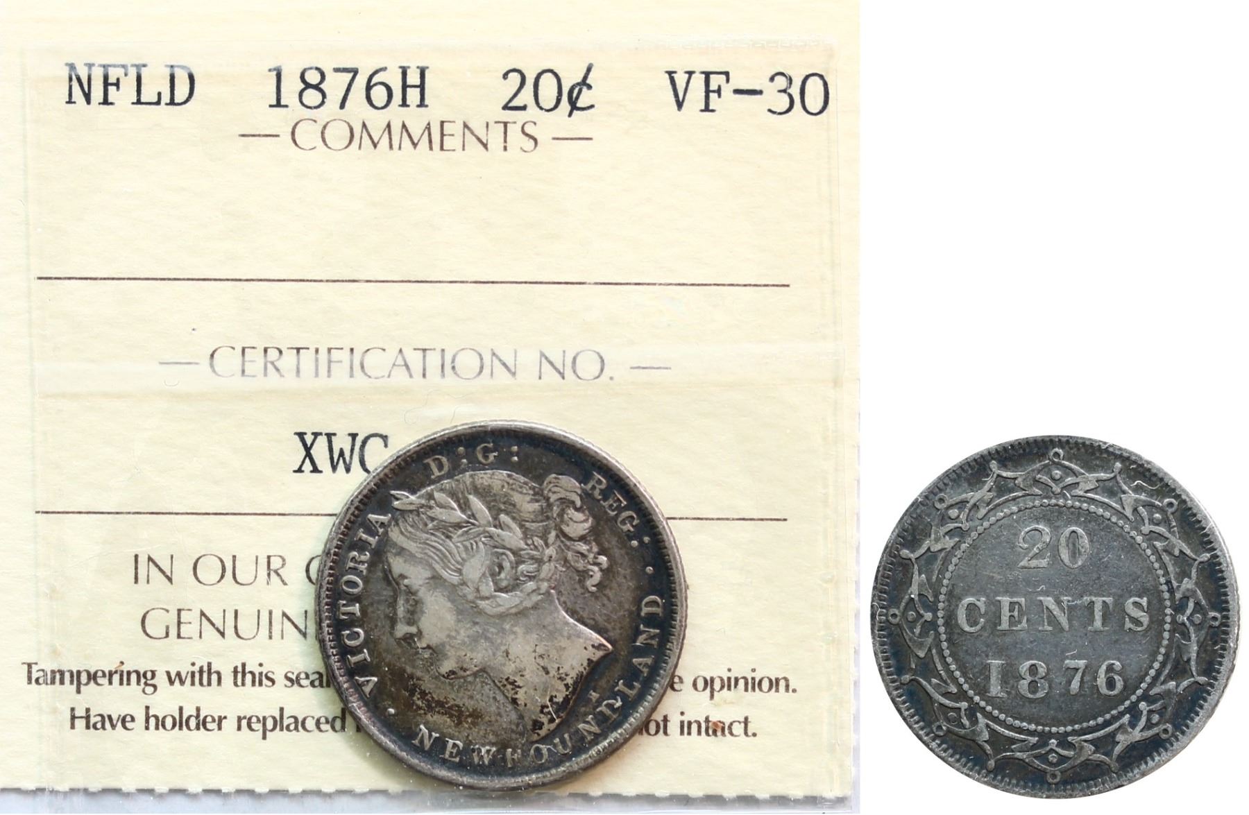 Nfld; 1876H 20¢ ICCS Choice Very Fine-30