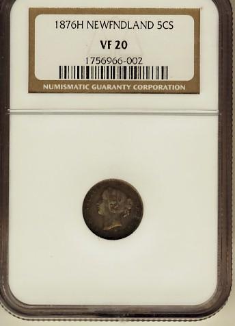 Nfld 1876H 5¢ NGC VF20.