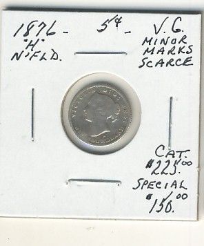 Nfld 1876H 5¢ VG with minor marks.
