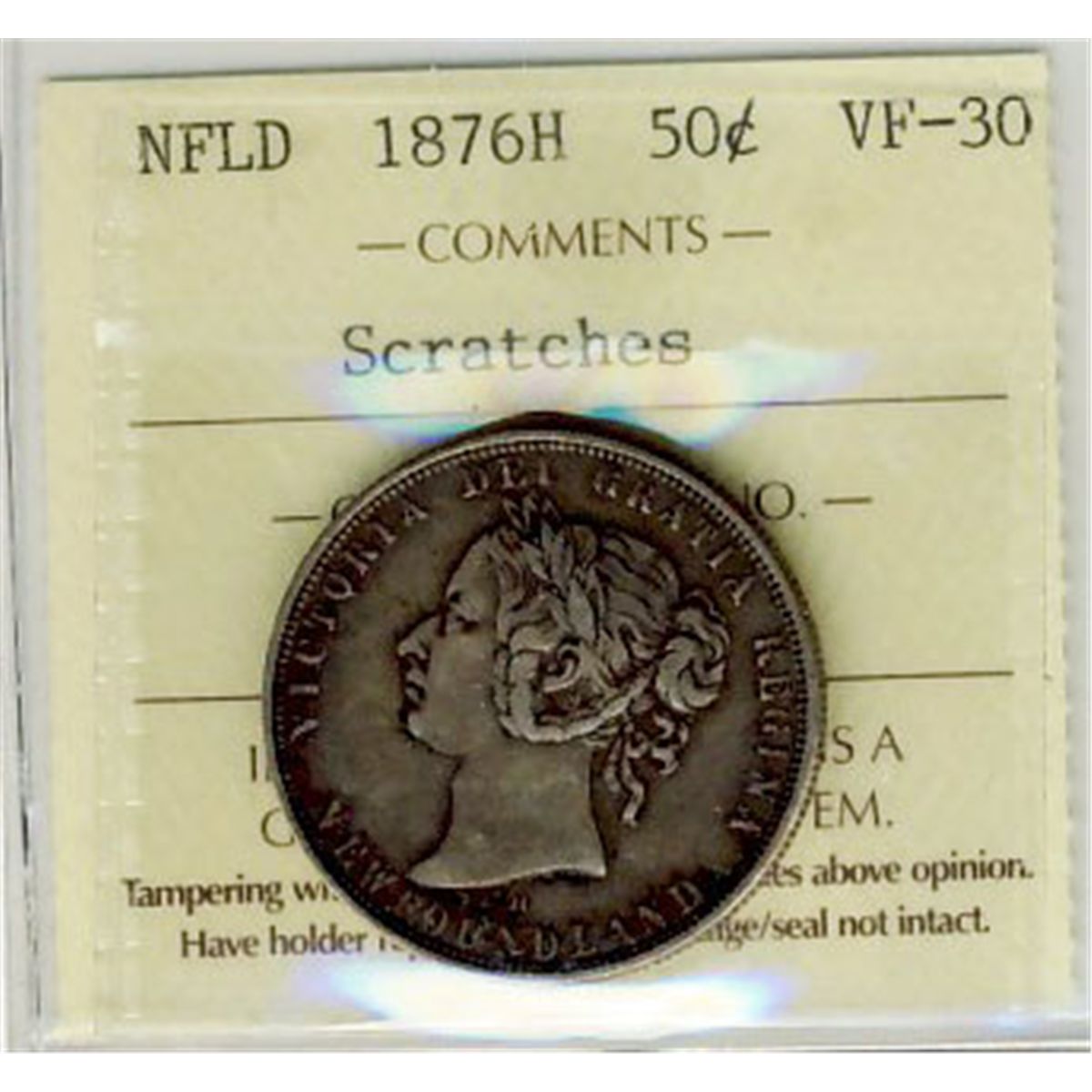 Nfld 1876H 50¢ ICCS VF30. Designated with scratch.