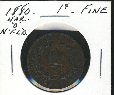 Nfld 1880 1¢ Nar 0 Fine. (PBA) Popular variety.