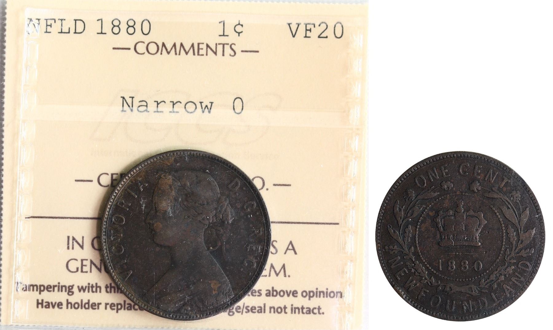 Nfld; 1880 1¢ "Narrow O" ICCS Very Fine-20