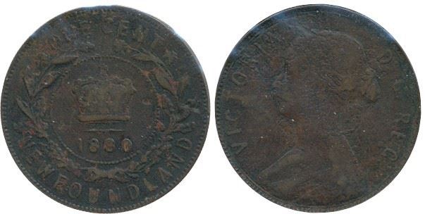 Nfld 1880 1¢ Oval 0, Fine.