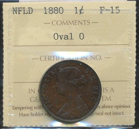 Nfld 1880 1¢ Oval 0 ICCS F15.