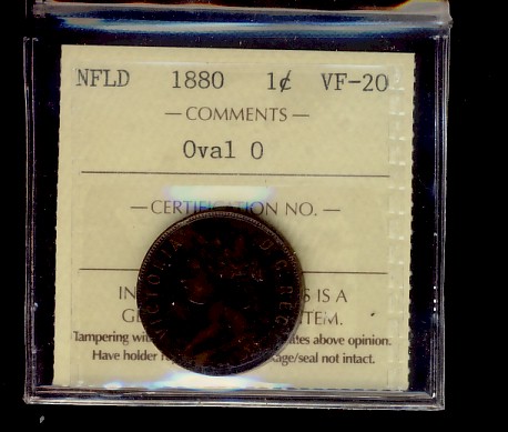 Nfld 1880 1¢ Oval O ICCS VF20.