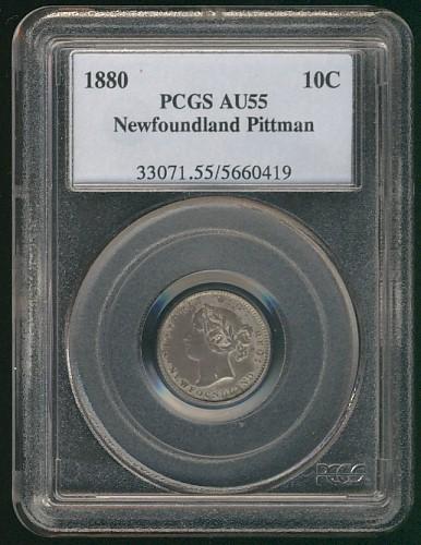 Nfld 1880 10¢ PCGS AU55. Pittman example.