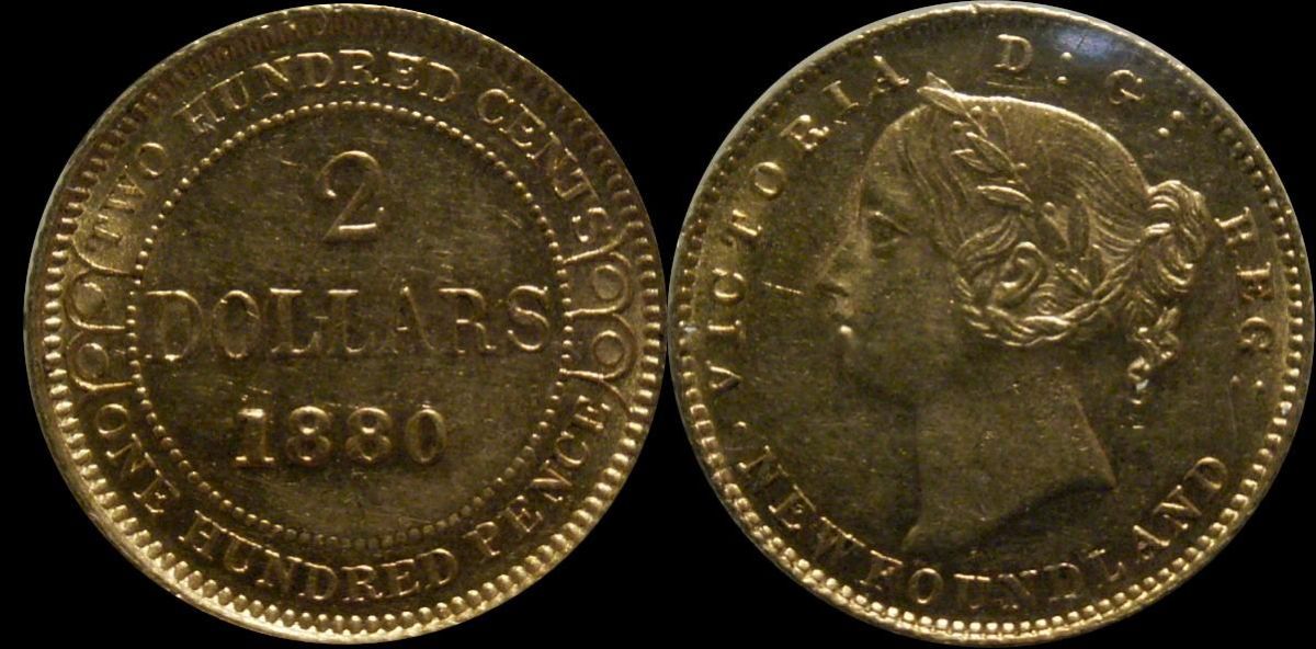 Nfld 1880 $2 Gold ICCS MS60. A superb mintstate example with nice eye appeal. Very scarce in this condition.