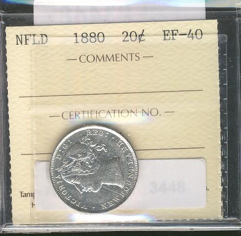 Nfld 1880 20¢ ICCS EF40. White and attractive.