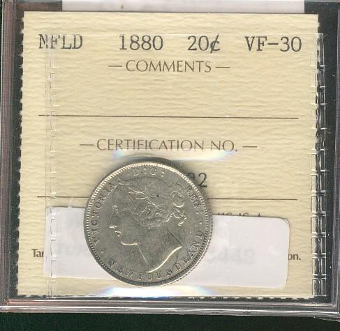 Nfld 1880 20¢ ICCS VF30.