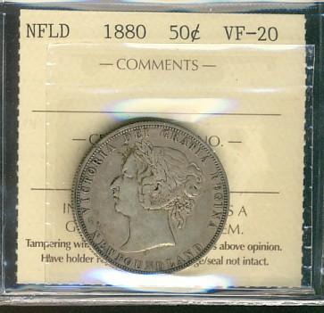 Nfld 1880 50¢ ICCS VF20. Key issue.