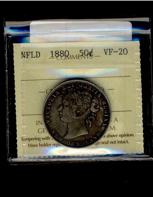 Nfld, 1880 50¢ ICCS VF20. Scarce date.