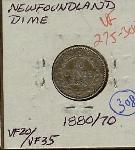 Nfld 1880/70 10¢ VF20, scarce date.