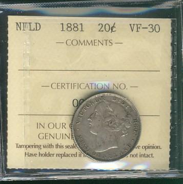 Nfld 1881 20¢ ICCS VF30.