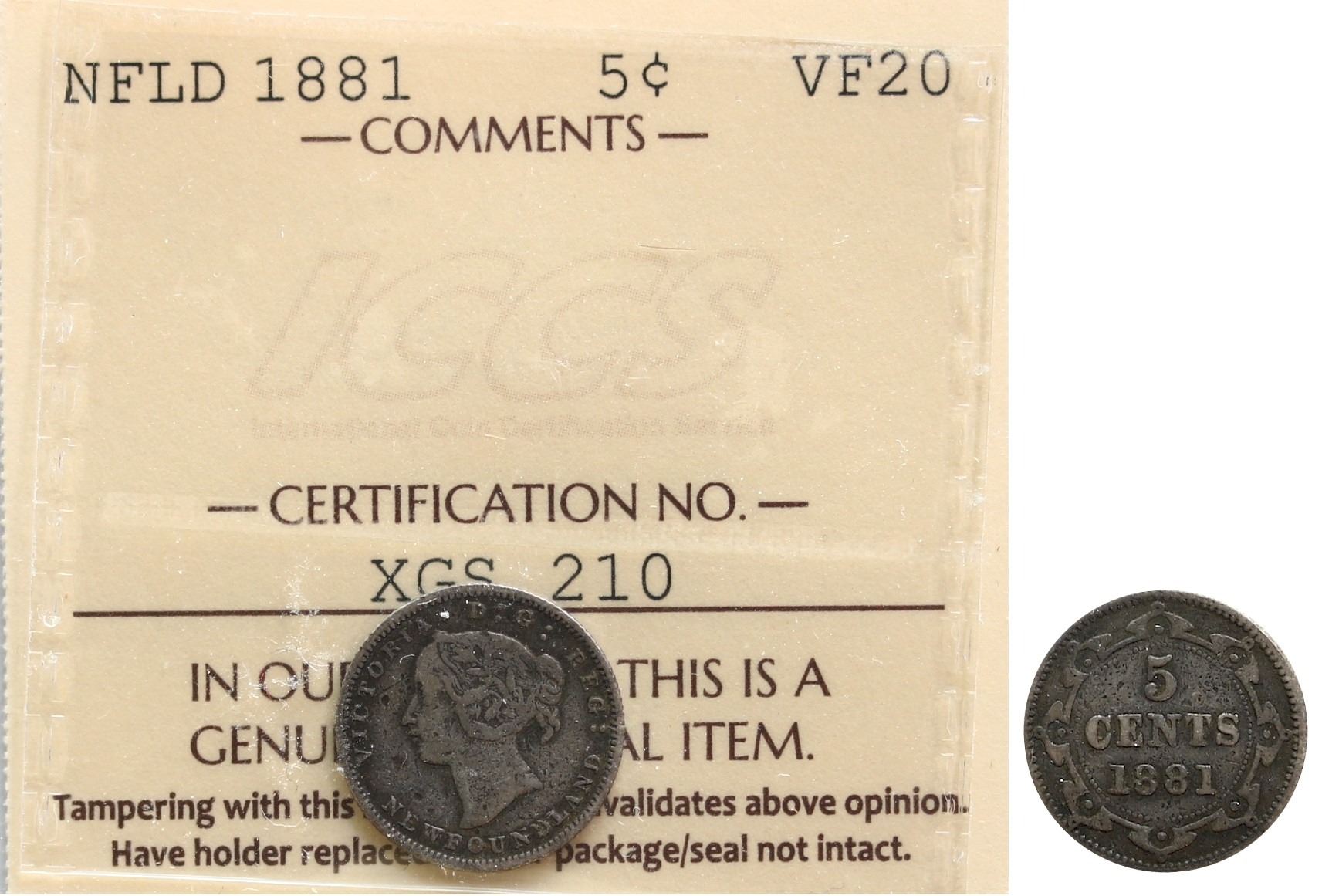 Nfld; 1881 5¢ ICCS Very Fine-20