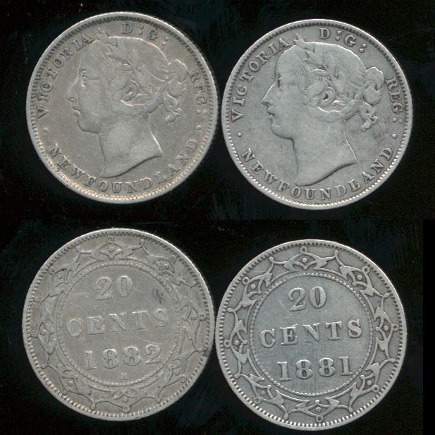 Nfld 1881H 20¢ & 1882H. Lot of 2 coins F to VF.