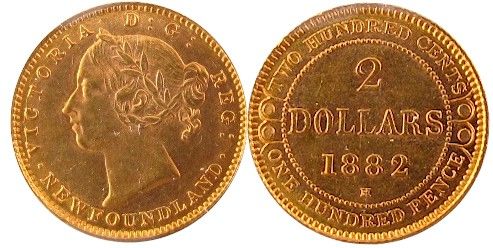 Nfld 1882H $2 Gold ICCS MS60. Attractive with lots of lustre.