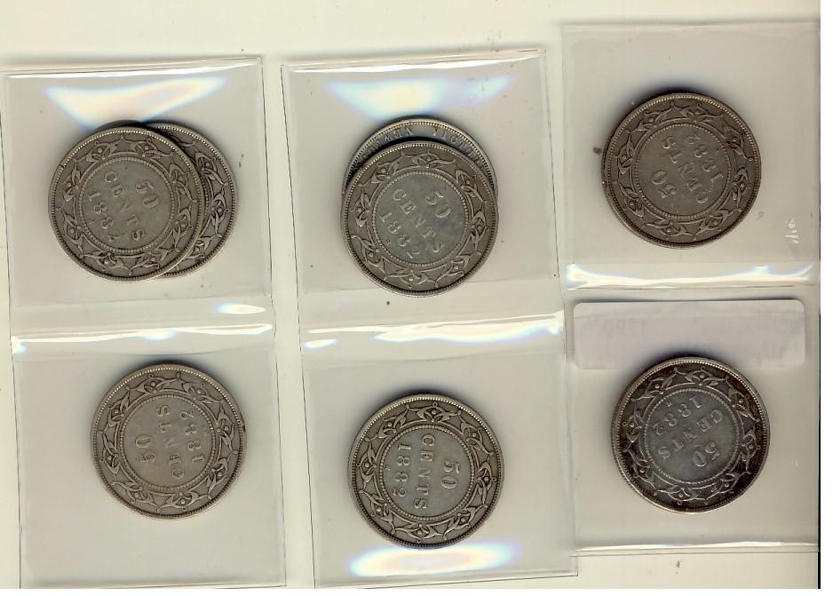 Nfld 1882H 50¢. Lot of 8 coins all Fine or better.