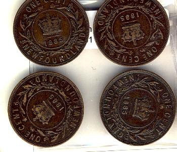 Nfld 1885 1¢. Lot of 4 coins. Fine to Fine+.