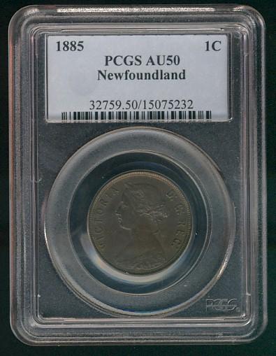 Nfld 1885 1¢ PCGS AU50. Chocolate brown.