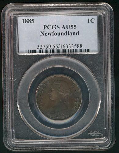 Nfld 1885 1¢ PCGS AU55. Chocolate brown.