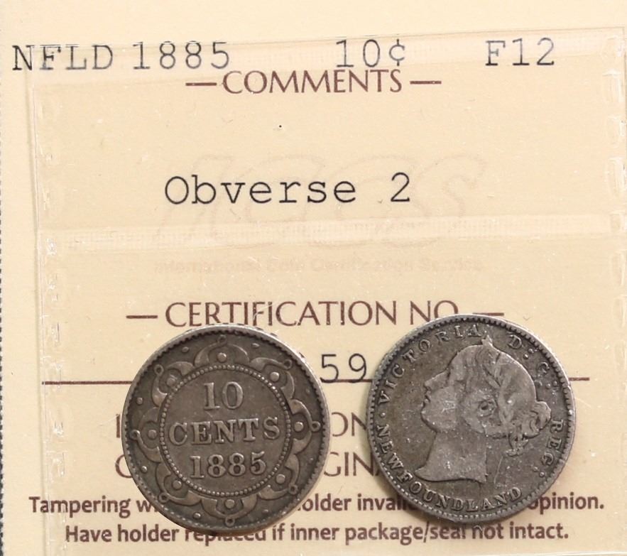 Nfld 1885 10¢ Obv.2 ICCS Fine-12