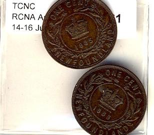 Nfld 1885 & 1888 1¢. Lot of 2 coins in VF condition.
