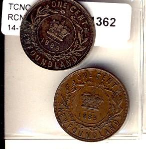Nfld 1885 & 1888 1¢. Lot of 2 coins in VF condition.