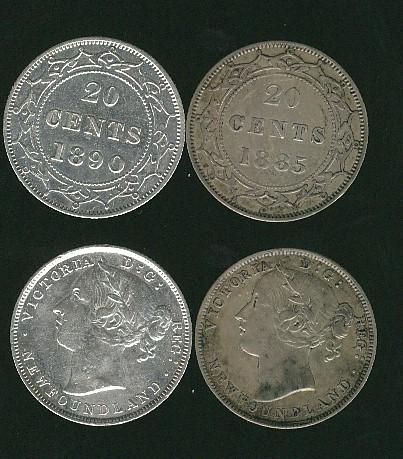 Nfld 1885 & 1890 20¢. Lot of 2 coins VF to EF.