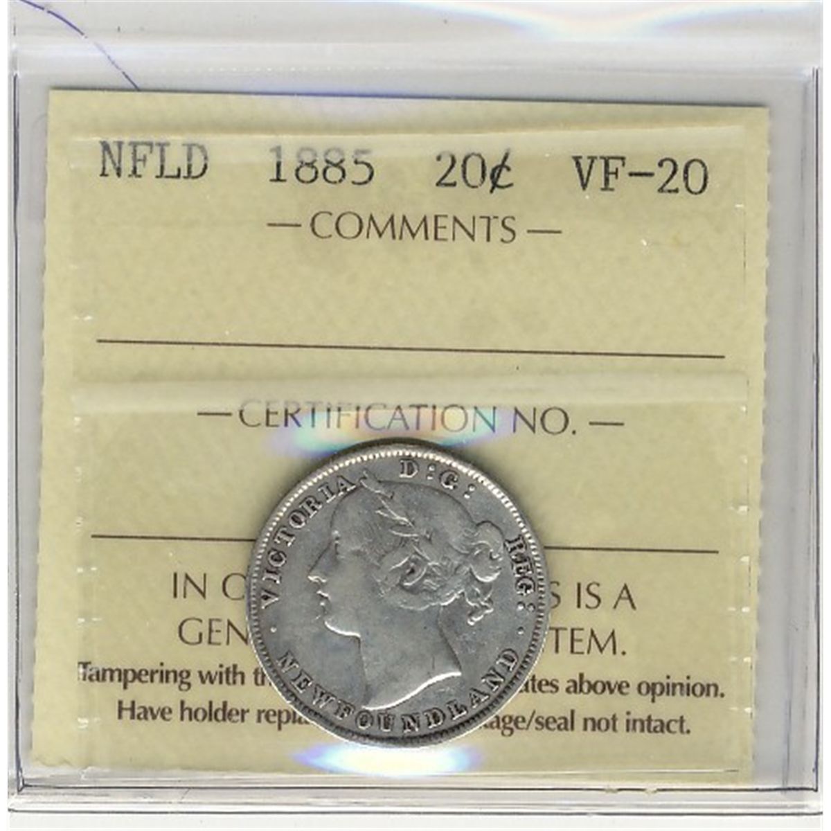 Nfld 1885 20¢ ICCS VF20.