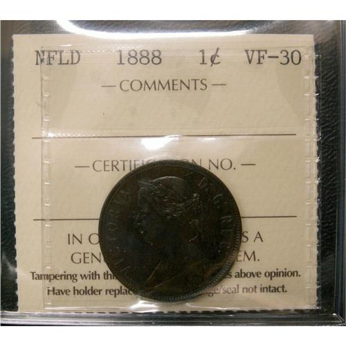 Nfld 1888 1¢ ICCS VF-30, nice chocolate brown example