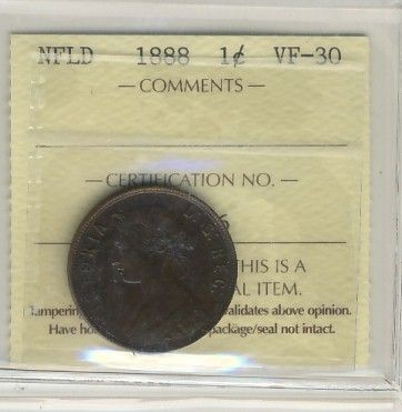 Nfld 1888 1¢ ICCS VF30. Key date.