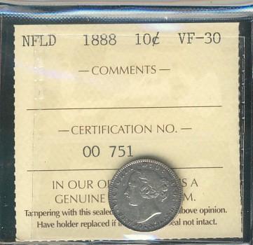 Nfld 1888 10¢ ICCS VF30.