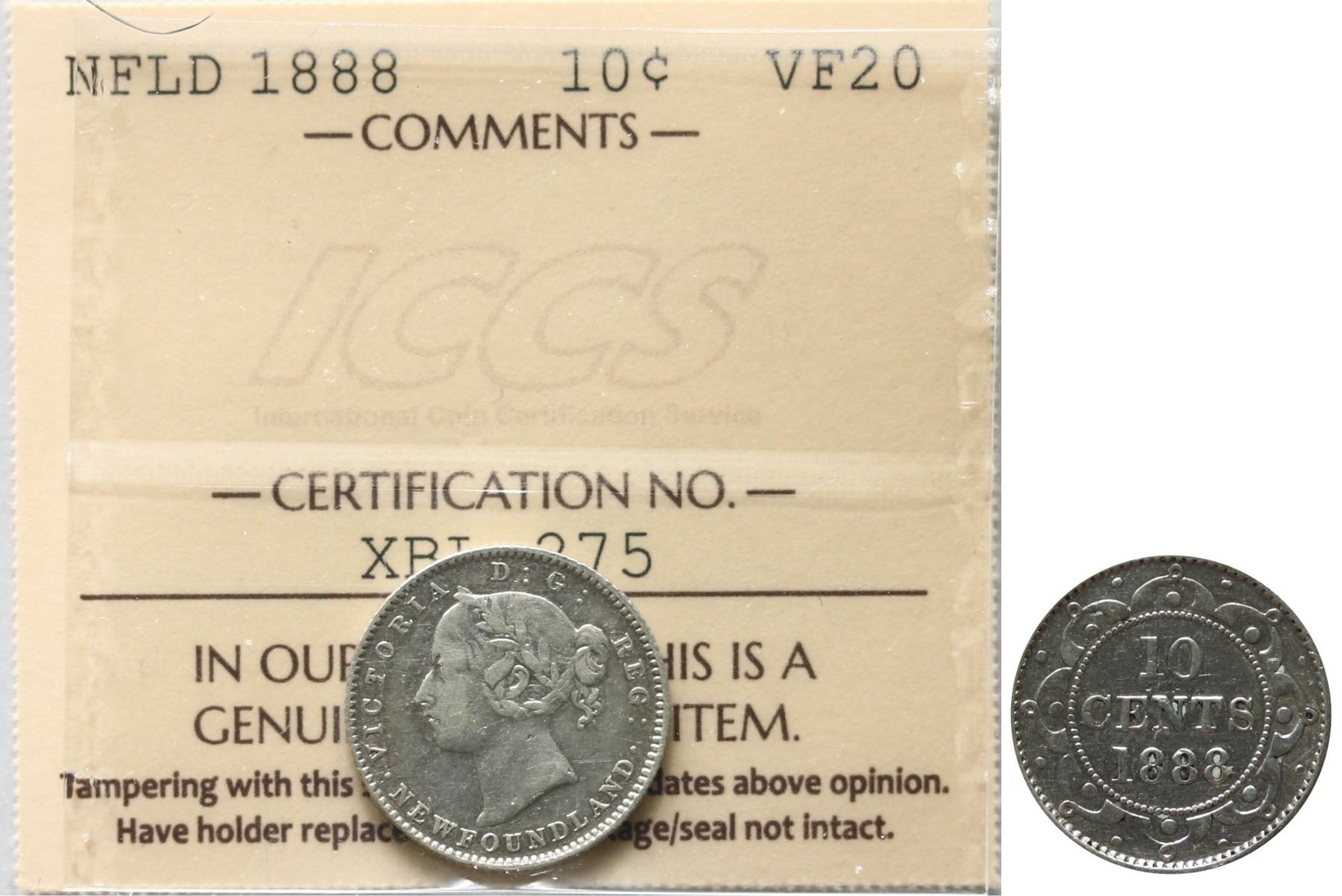 Nfld; 1888 10¢ ICCS Very Fine-20