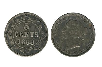 Nfld 1888 5¢ F12 example. Not in certified holder.