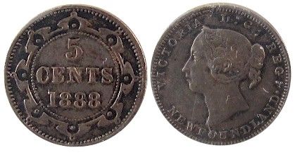 Nfld 1888 5¢ ICCS VF-30 Obverse 3 KEY DATE RARE.
