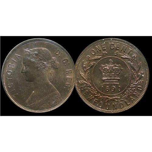 Nfld 1890 1¢ ICCS MS64 Red, superb fields with nice eye appeal. A rare large cent!