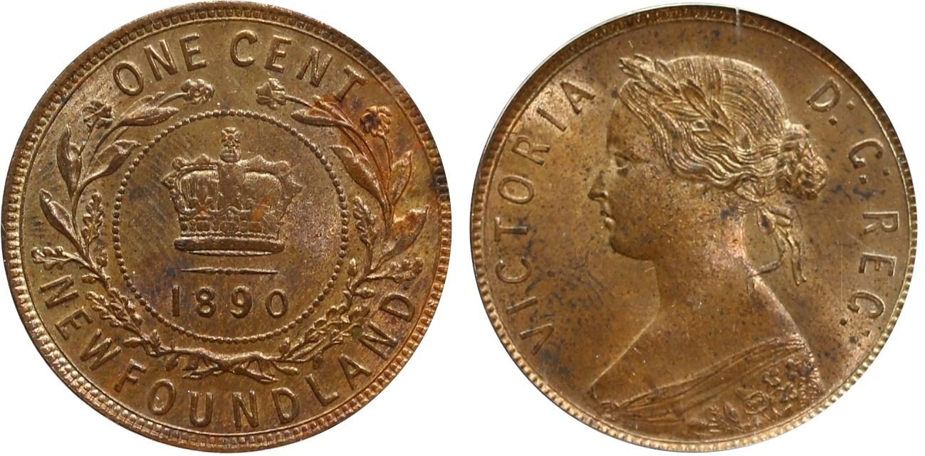 Nfld; 1890 1¢ PCGS Very Choice Mint State-64 BN - 50% RED lustre. Superb lustrous and attractive issue.