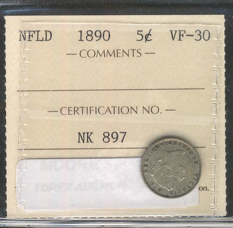 Nfld 1890 5¢ ICCS VF30.