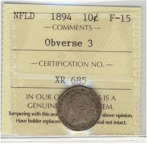Nfld 1894 10¢ Obv 3 ICCS F15.